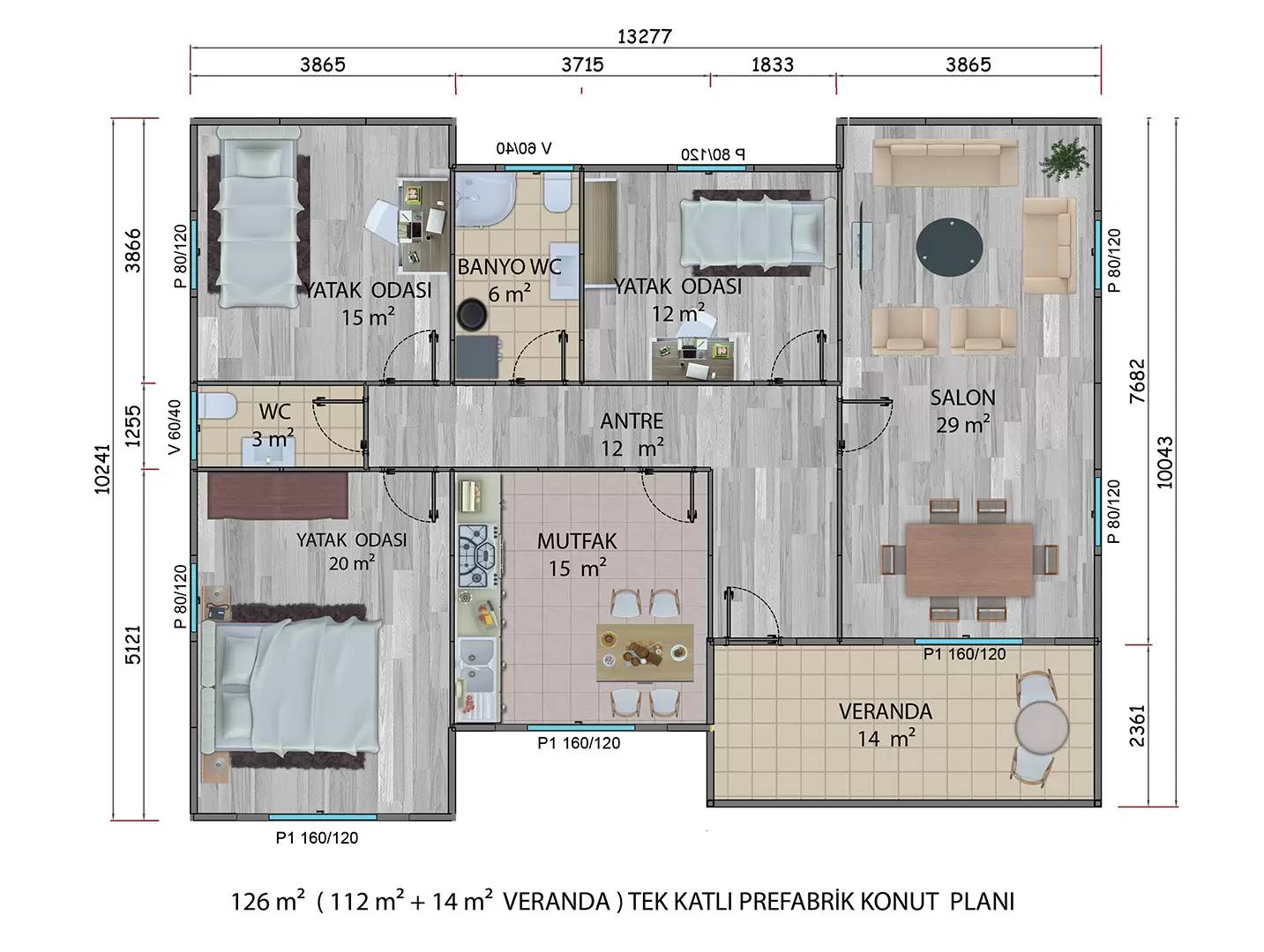 149 m² Tek Katlı Prefabrik Ev – 127 m² Kapalı Alan + 22 m² Veranda, Geniş 4+1 Plan
